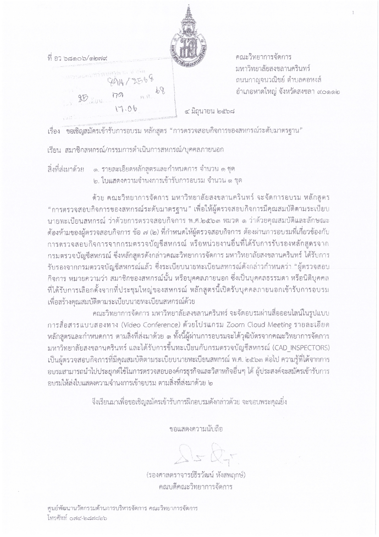 ประชาสัมพันธ์และเชิญชวนสมัครเข้ารับการอบรมหลักสูตร "การตรวจสอบกิจการของสหกรณ์ระดับมารตฐาน"