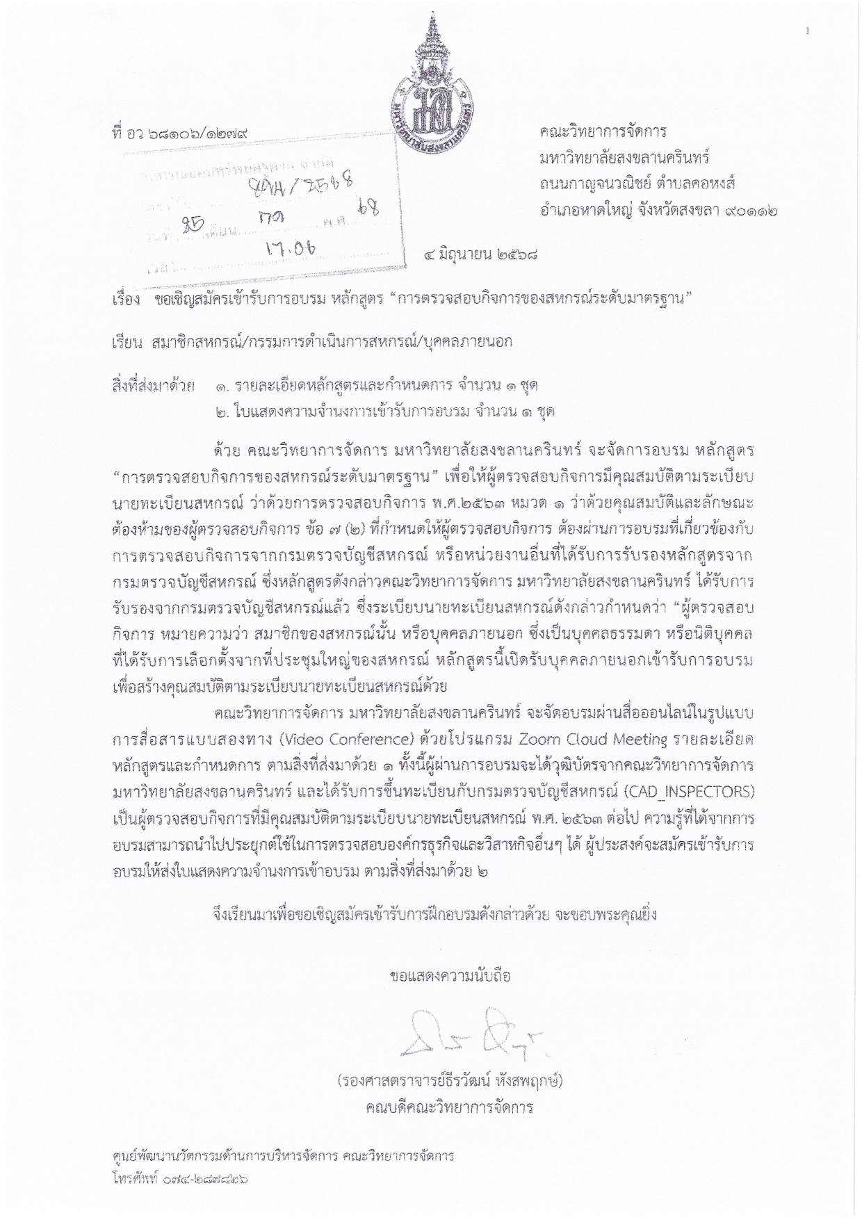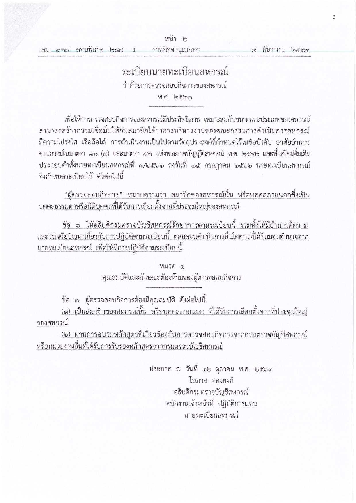 ประชาสัมพันธ์และเชิญชวนสมัครเข้ารับการอบรมหลักสูตร "การตรวจสอบกิจการของสหกรณ์ระดับมารตฐาน" 2